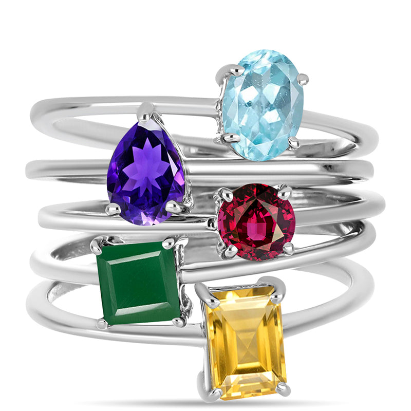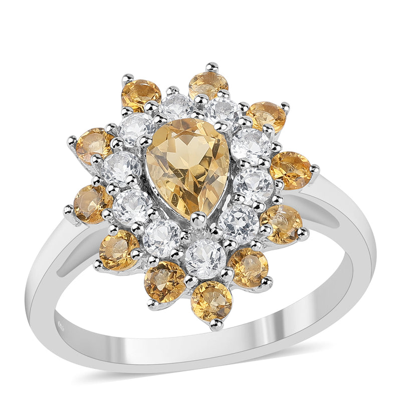 Stříbrný Prsten s Citrínem a Bílým Topazem
