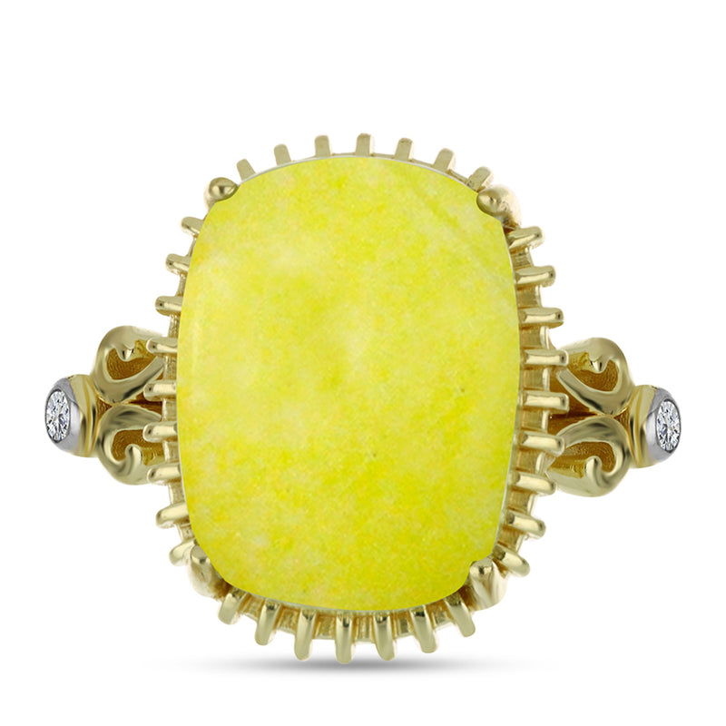 Pozlacený Stříbrný Prsten se Žlutým Serpentinem a Bílým Topazem