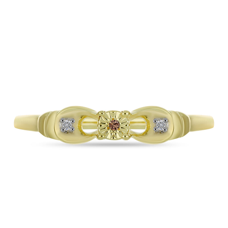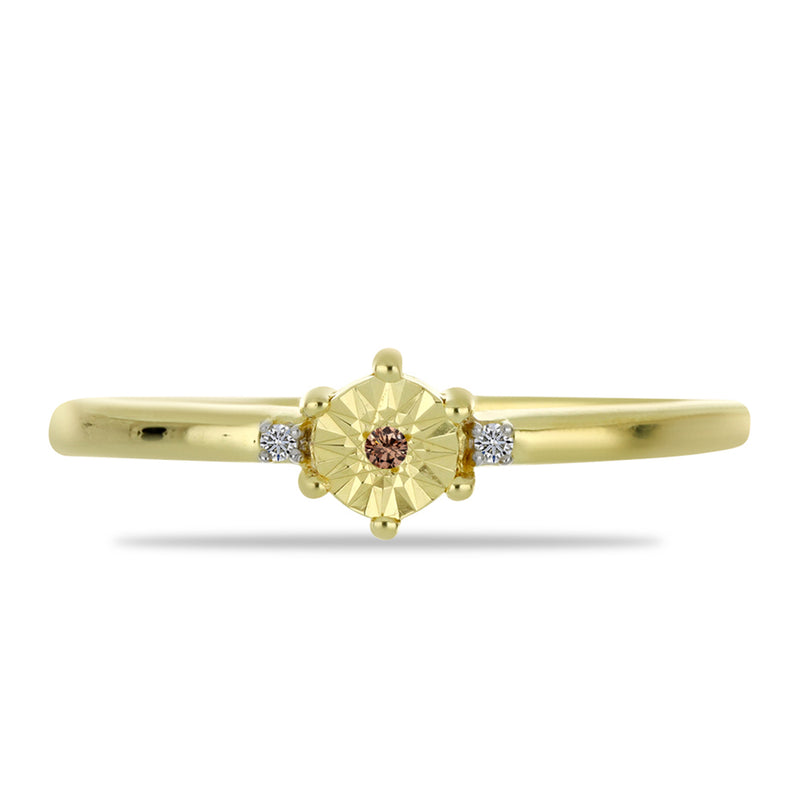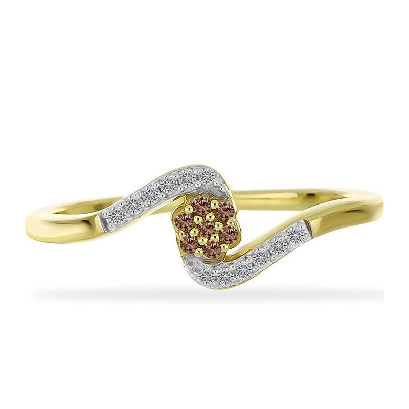 Pozlacený Stříbrný Prsten s Champagne Diamantem a Bílým Diamantem