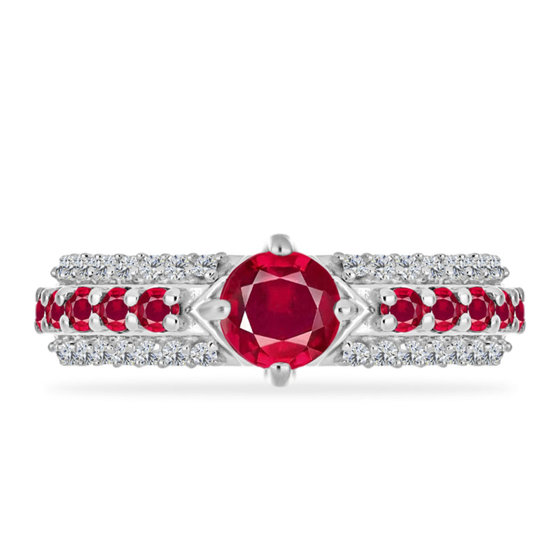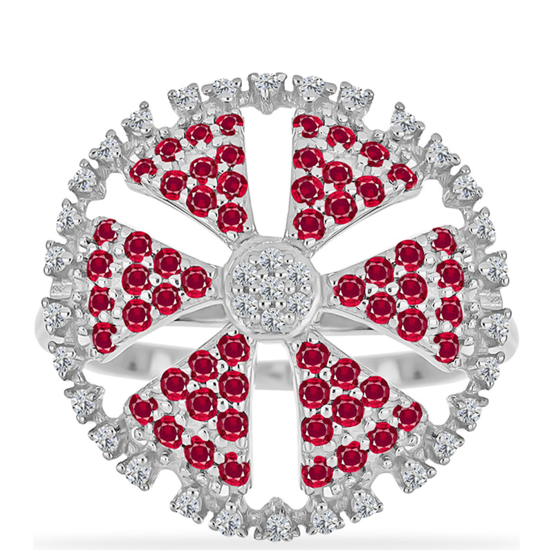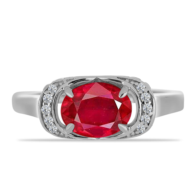 Stříbrný Prsten s Madagaskarským Rubínem a Bílým Diamantem