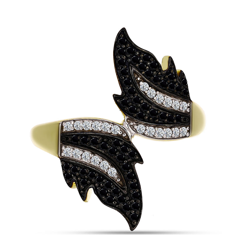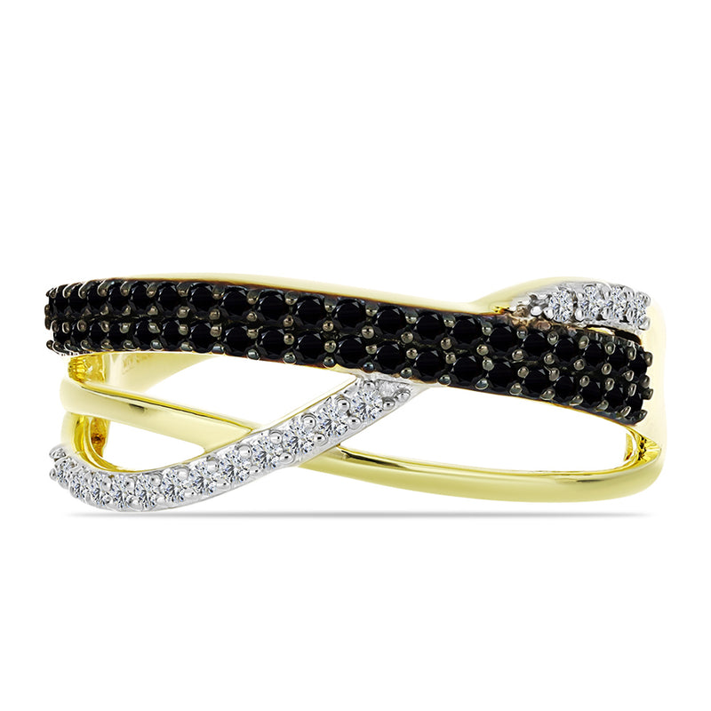 Pozlacený Stříbrný Prsten s Černým spinelem a Bílým Topazem