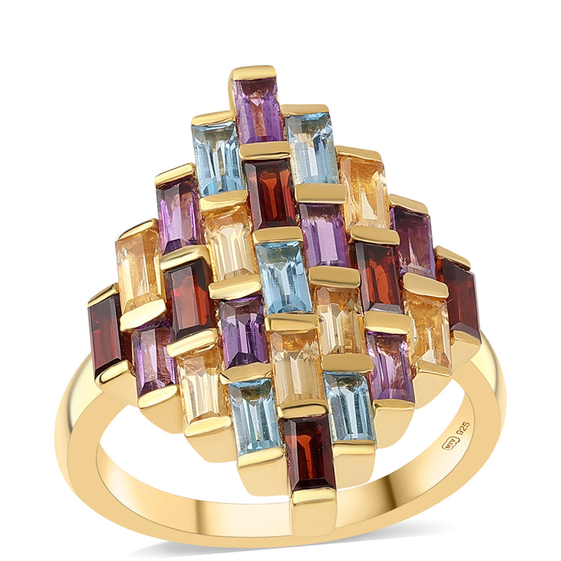 Pozlacený Stříbrný Prsten s Rhodolitovým Granátem a Tanzanitem