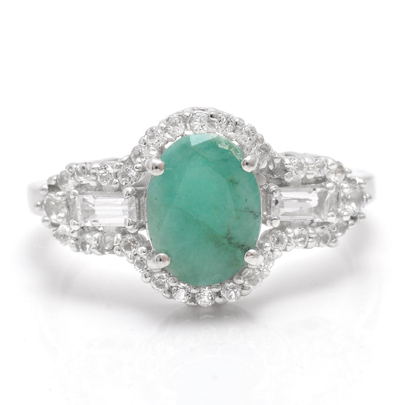 Stříbrný Prsten s Brazilským Smaragdem a Bílým Topazem
