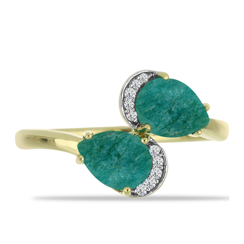Pozlacený Stříbrný Prsten s Brazilským Smaragdem a Bílým Topazem