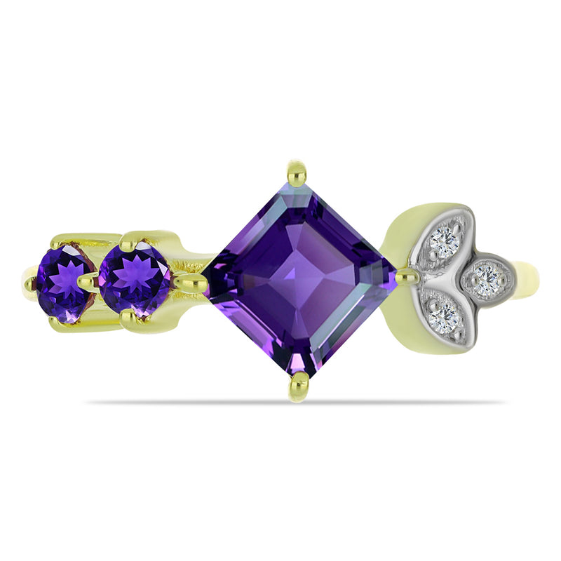 Pozlacený Stříbrný Prsten s Marockým Ametystem a Bílým Topazem