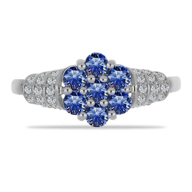 Stříbrný Prsten s Certifikovaný Královským modrým moissanitem pěstovaný v laboratoři a Bílým Topazem