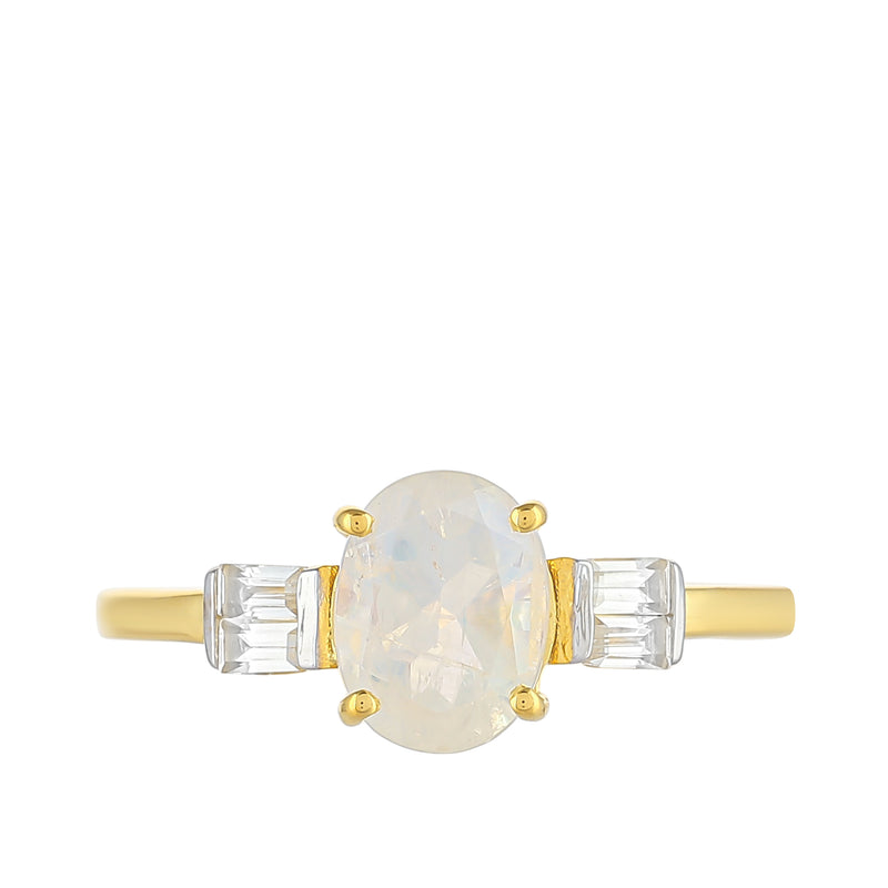 Pozlacený Stříbrný Prsten s Duhovým Měsíčním Kamenem a Bílým Topazem