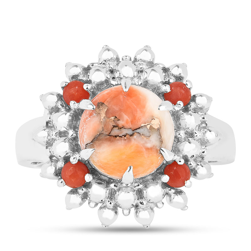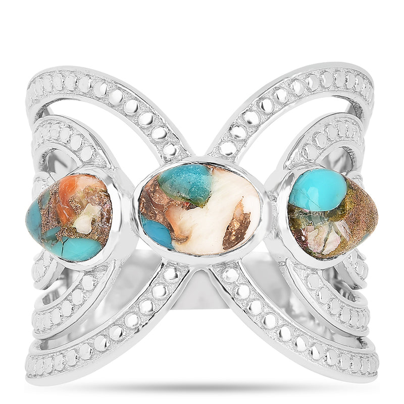 Stříbrný Prsten s Ústřicovým Tyrkysem a Červeným Korálem