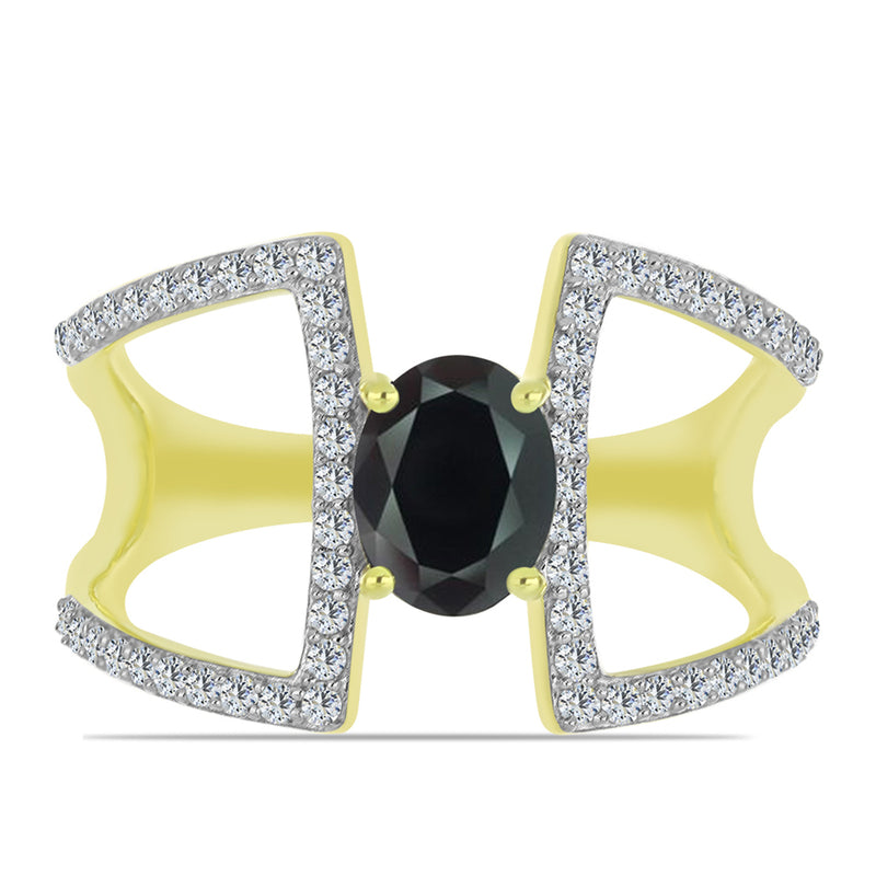 Pozlacený Stříbrný Prsten s Obsidiánem a Bílým Topazem