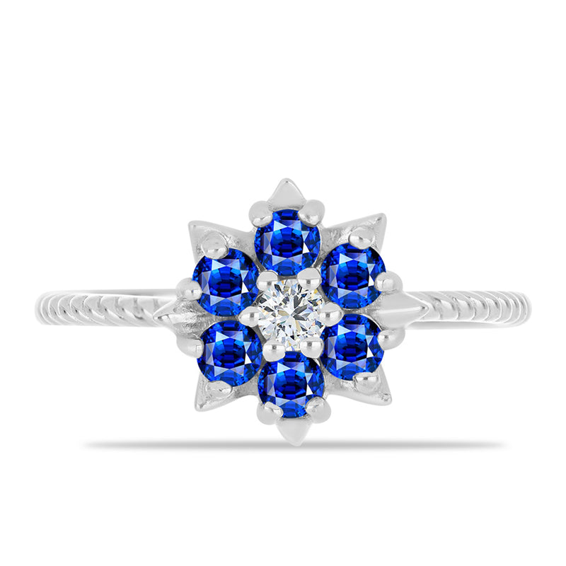 Stříbrný Prsten s Australským Modrým Safírem a Bílým Topazem