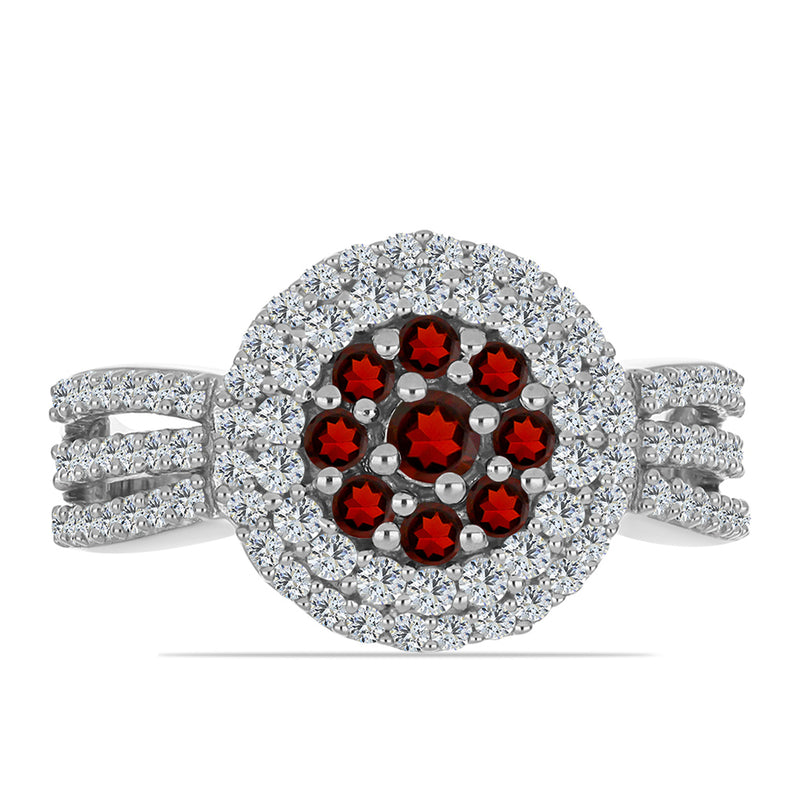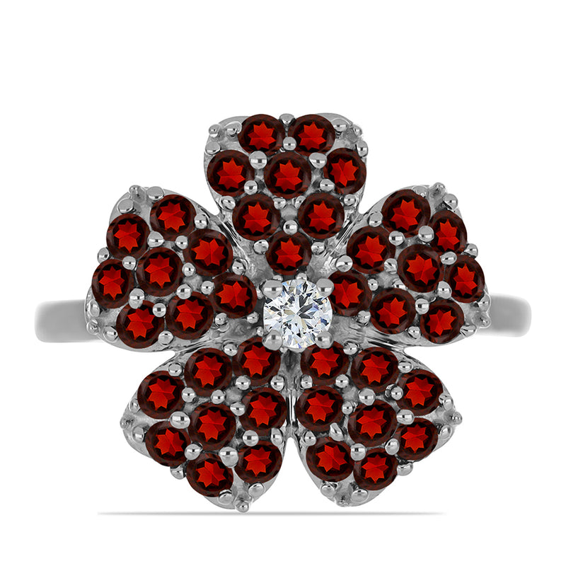 Stříbrný Prsten s Bartonským Granátem a Bílým Topazem