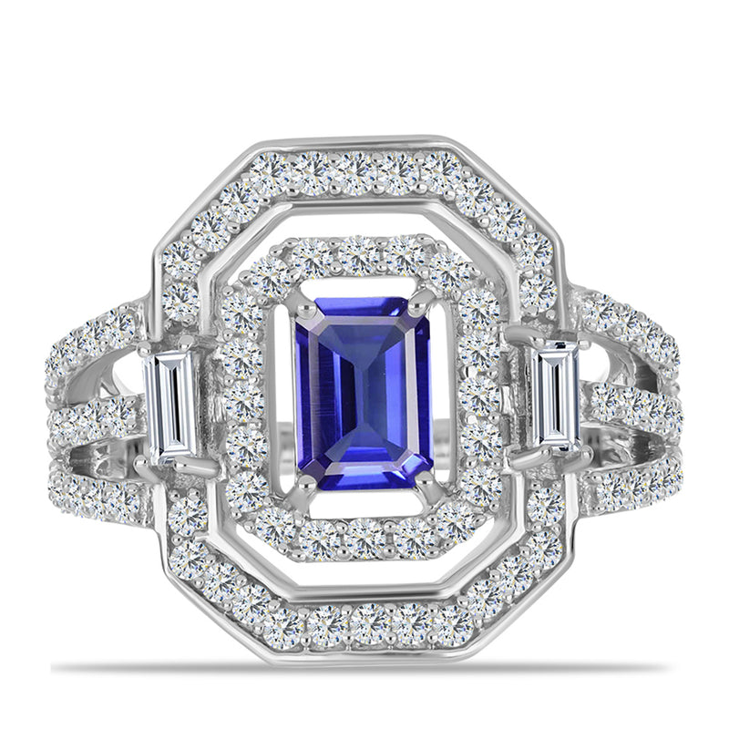 Stříbrný Prsten s Tanzanitem a Bílým Topazem