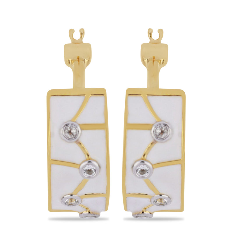 Pozlacené Stříbrné Náušnice se Smaltem a Bílým Topazem