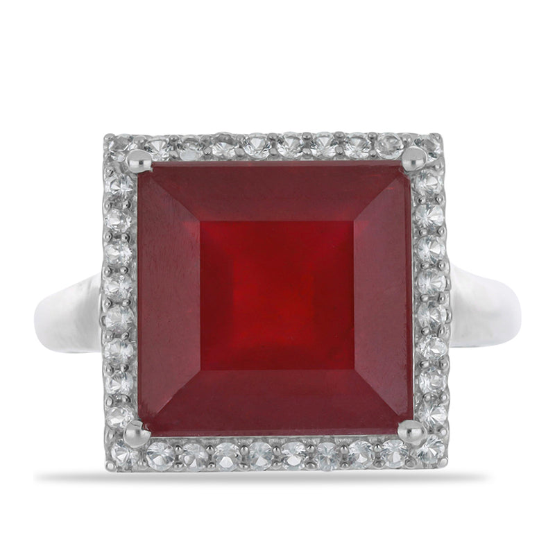 Stříbrný Prsten s Madagaskarským Rubínem a Bílým Topazem