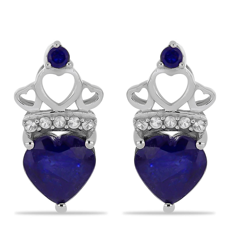 Stříbrné Náušnice s Australským Modrým Safírem a Bílým Topazem