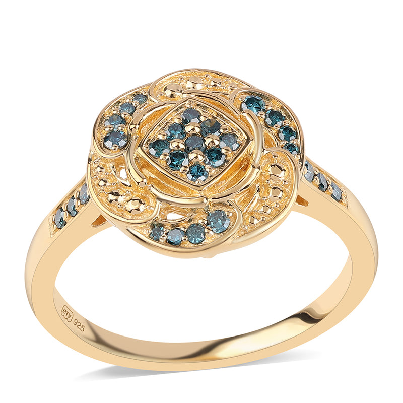Pozlacený Stříbrný Prsten s Modrým Diamantem
