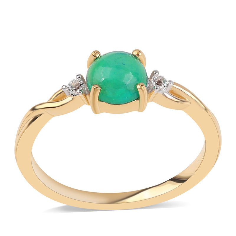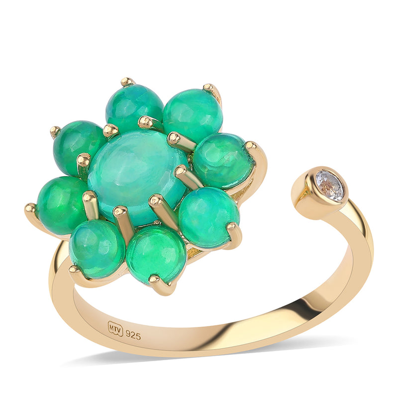 Pozlacený Stříbrný Prsten se Zeleným Etiopským Opálem z Lega Dembi a Bílým Topazem