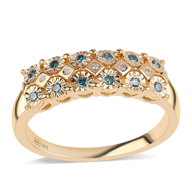 Pozlacený Stříbrný Prsten s Modrým Diamantem a Bílým Diamantem
