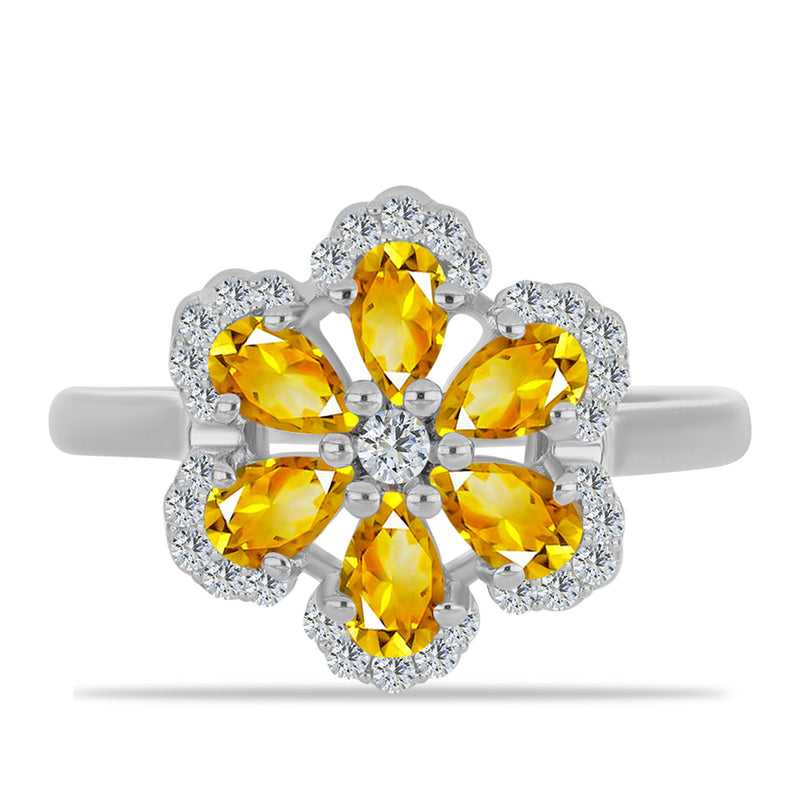 Stříbrný Prsten s Uralským Citrínem a Bílým Topazem
