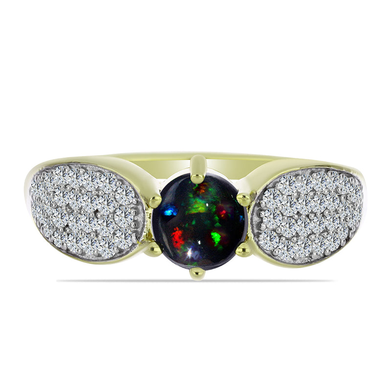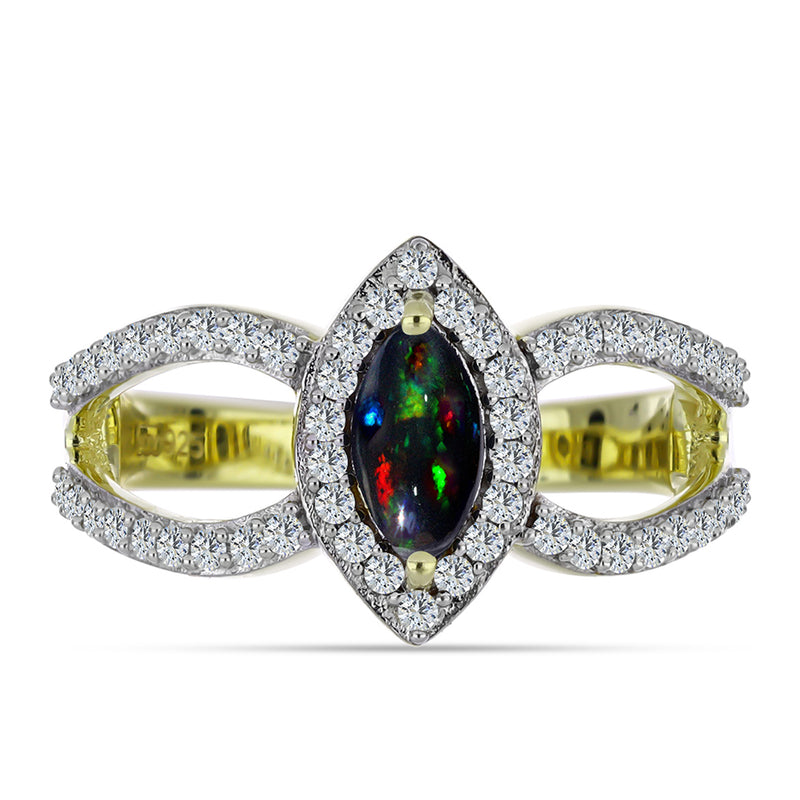 Pozlacený Stříbrný Prsten s Půlnočně Černým Etiopským Opálem z Lega Dembi a Bílým Topazem