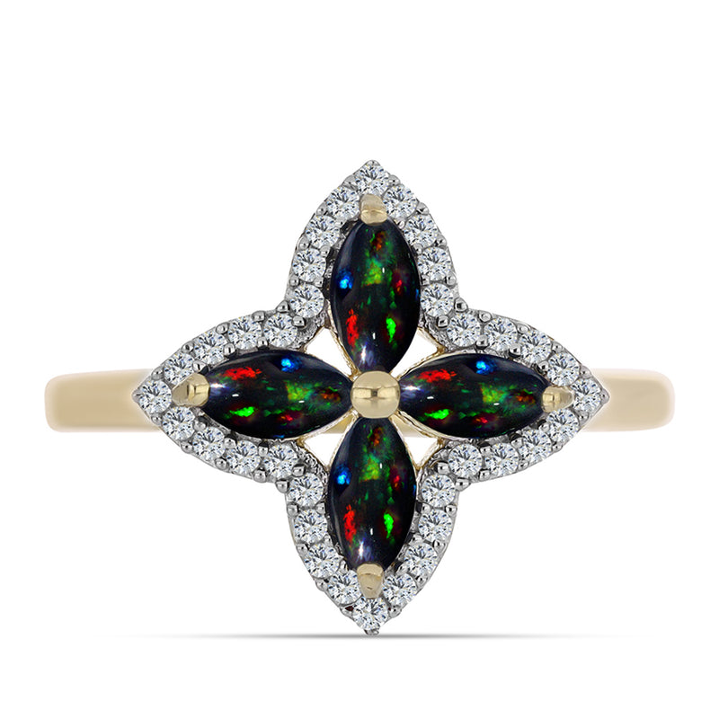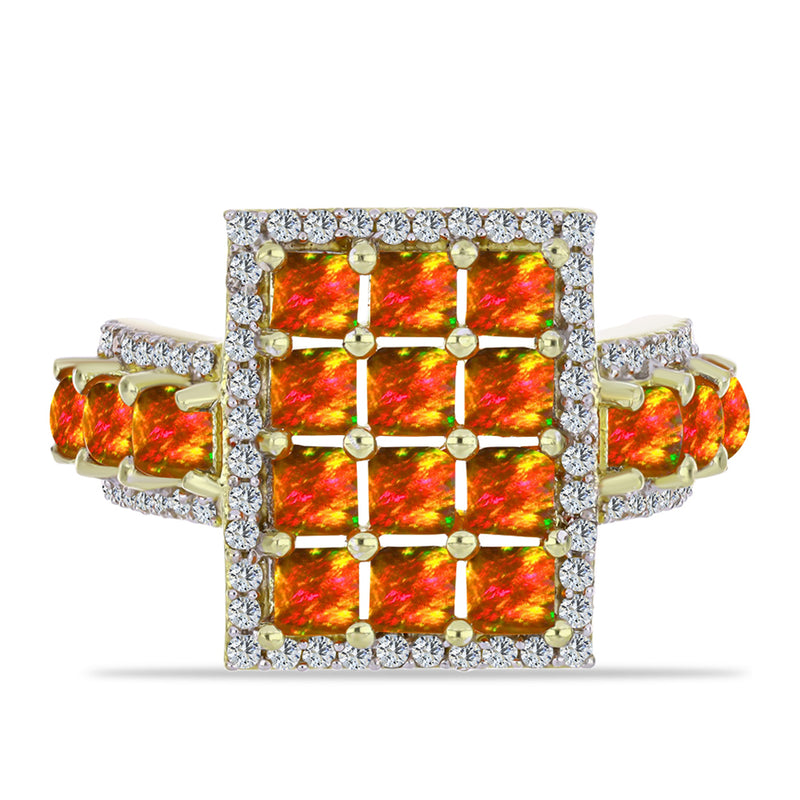 Pozlacený Stříbrný Prsten s Americkým Ohnivým Opálem a Bílým Topazem