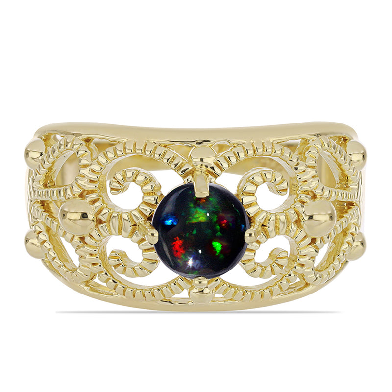 Pozlacený Stříbrný Prsten s Půlnočně Černým Etiopským Opálem z Lega Dembi