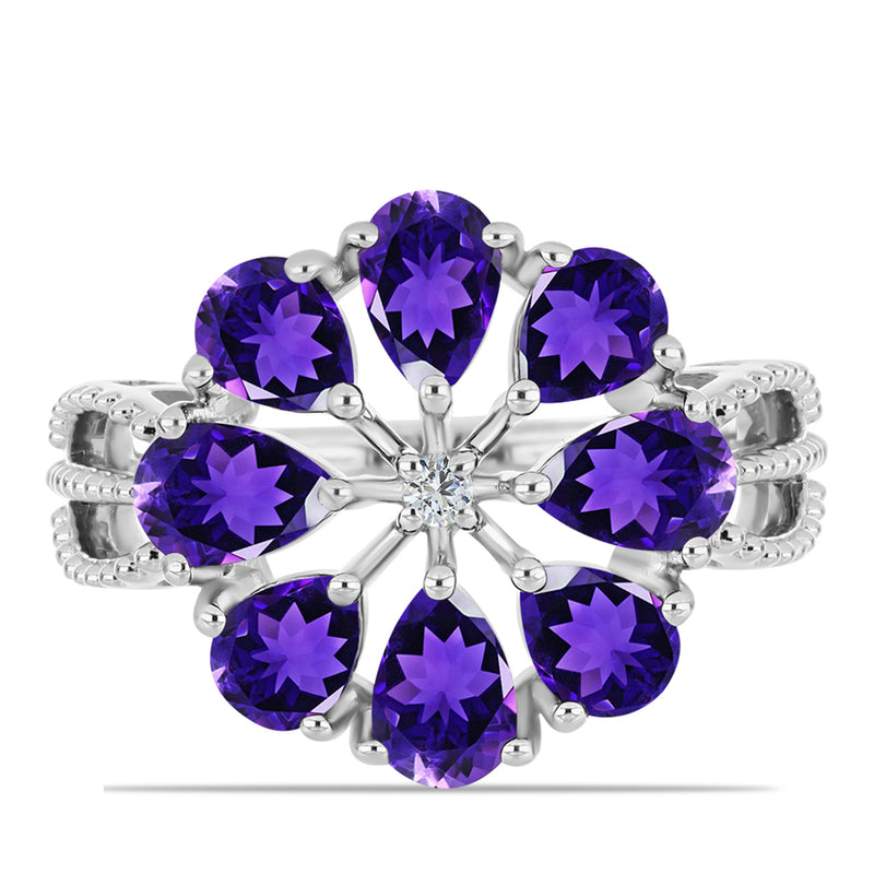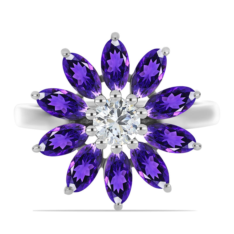 Stříbrný Prsten s Marockým Ametystem a Bílým Topazem