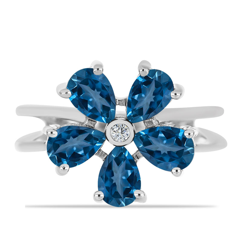 Stříbrný Prsten s Londýnským Modrým Topazem a Bílým Topazem