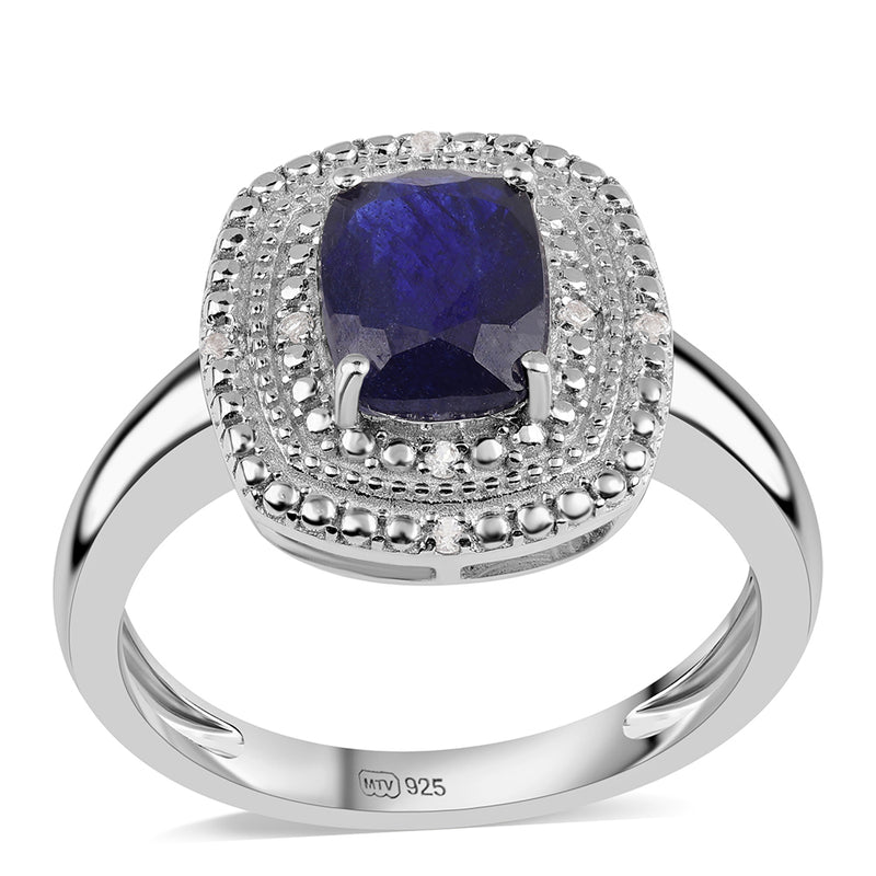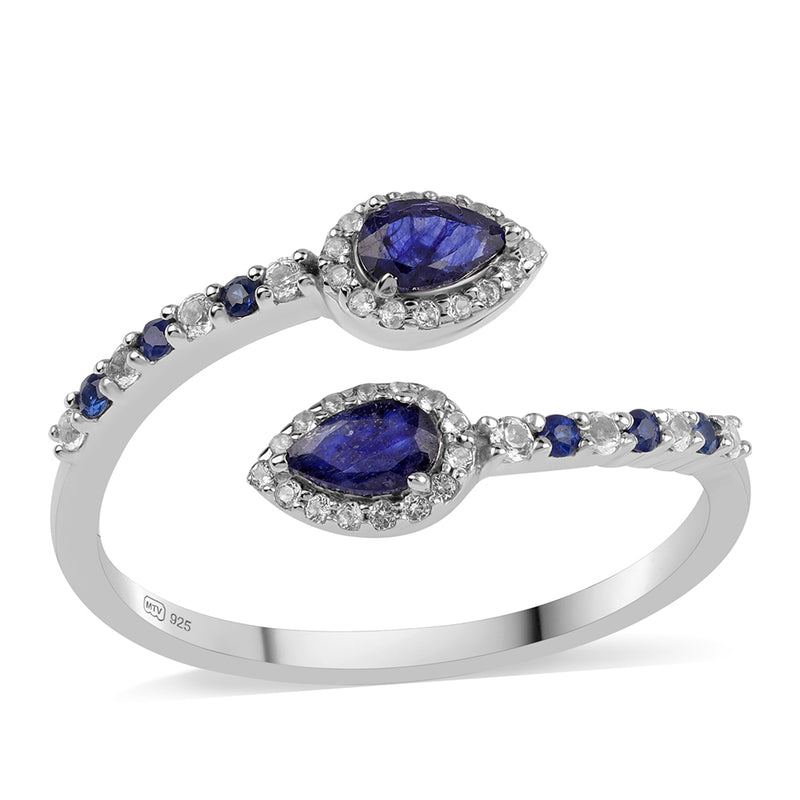 Stříbrný Prsten s Australským Modrým Safírem a Bílým Topazem