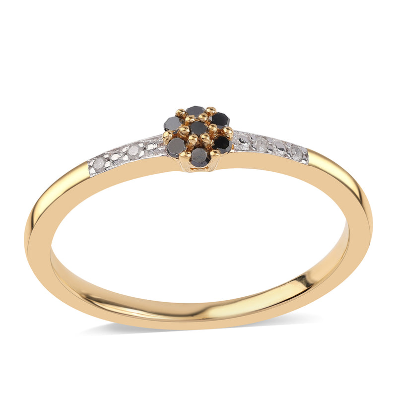 Pozlacený Stříbrný Prsten s Černým Diamantem a Bílým Diamantem