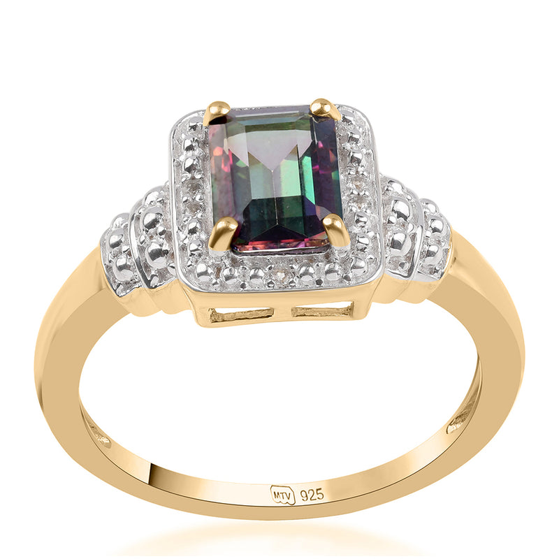 Pozlacený Stříbrný Prsten s Mystickým Topazem a Bílým Topazem