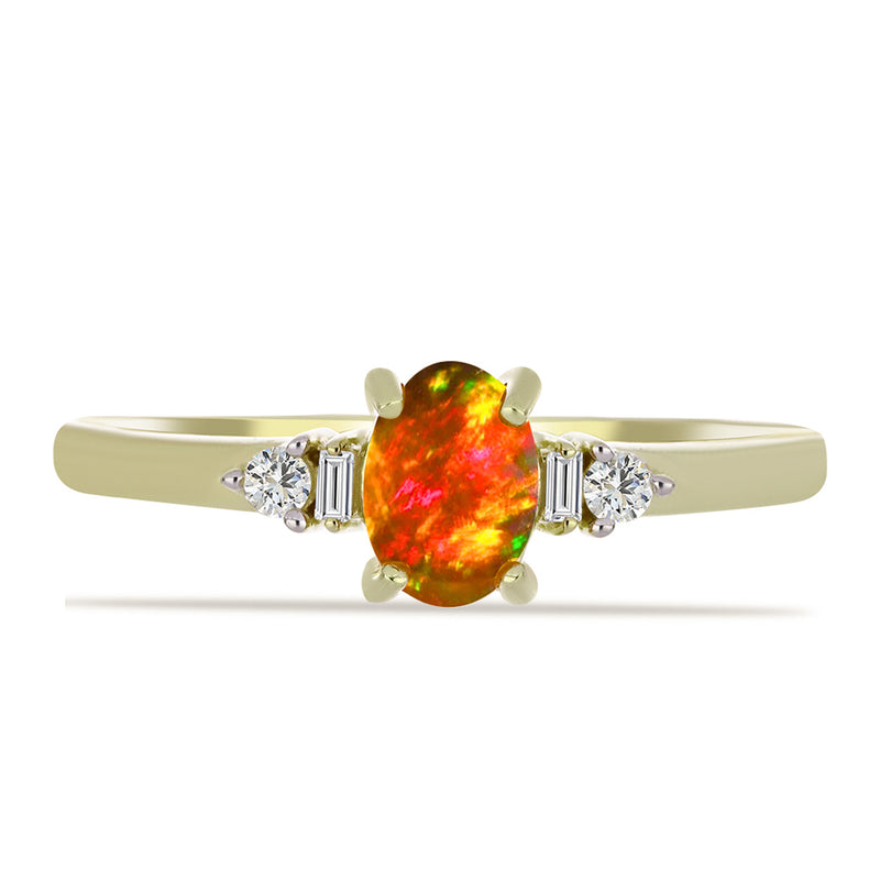Pozlacený Stříbrný Prsten s Americkým Ohnivým Opálem a Bílým Zirkonem