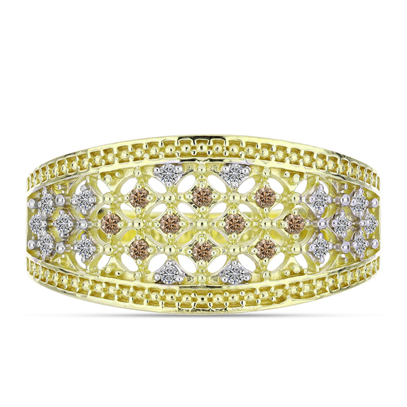 Pozlacený Stříbrný Prsten s Champagne Diamantem a Bílým Diamantem
