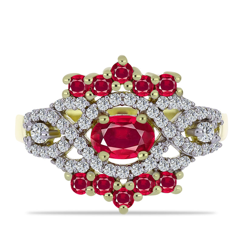 Pozlacený Stříbrný Prsten s Madagaskarským Rubínem a Bílým Topazem