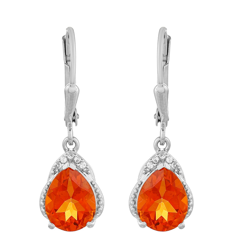 Stříbrné Náušnice s Padparadscha Křemenem a Bílým Topazem