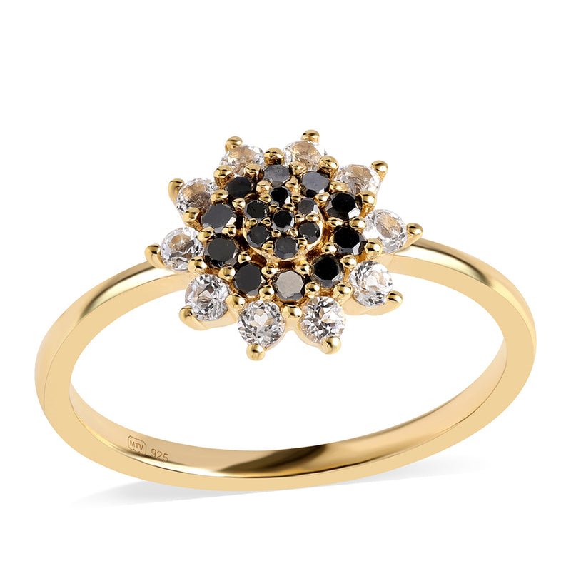 Pozlacený Stříbrný Prsten s Černým Diamantem a Bílým Topazem