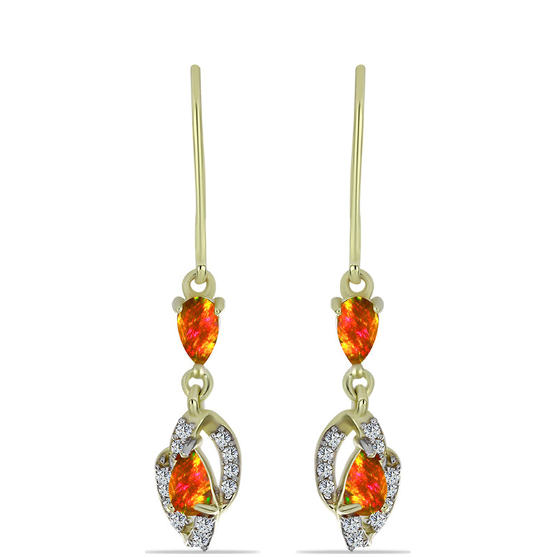 Pozlacené Stříbrné Náušnice s Americkým Ohnivým Opálem a Bílým Topazem