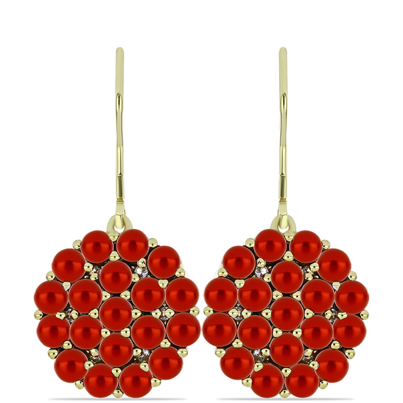 Pozlacené Stříbrné Náušnice s Červená sladkovodní Perlou a Bílým Topazem