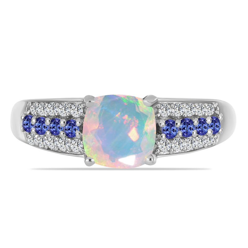 Stříbrný Prsten s Tanzanitem a Etiopským Opálem z Lega Dembi