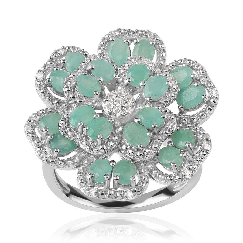 Stříbrný Prsten s Brazilským Smaragdem a Bílým Topazem