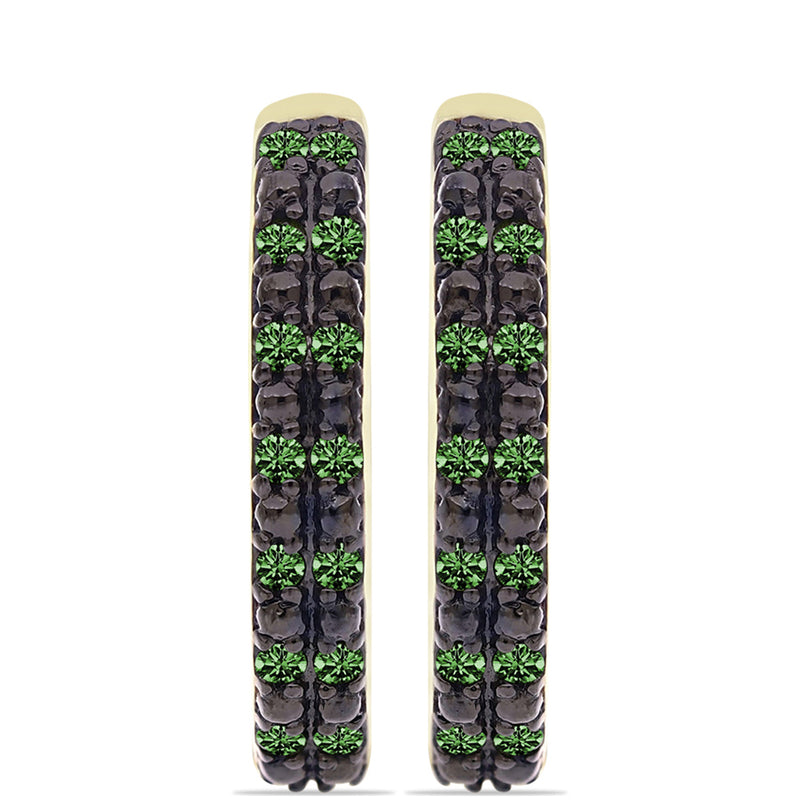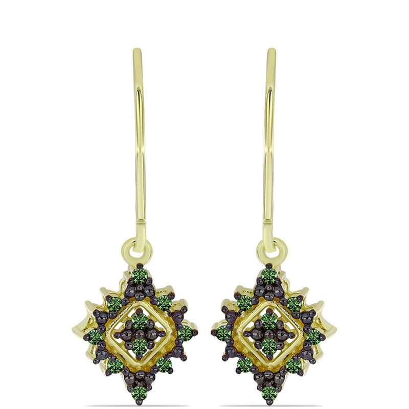 Pozlacené Stříbrné Náušnice se Zeleným Diamantem