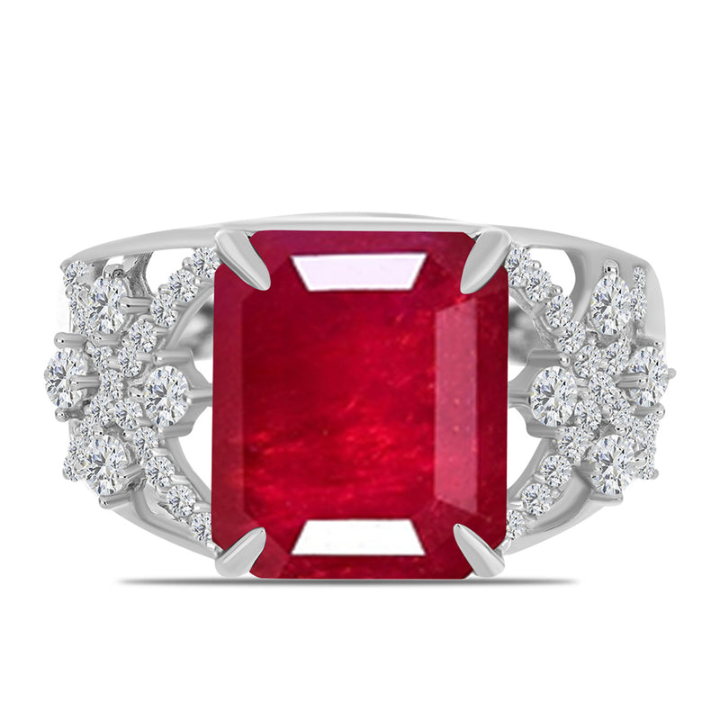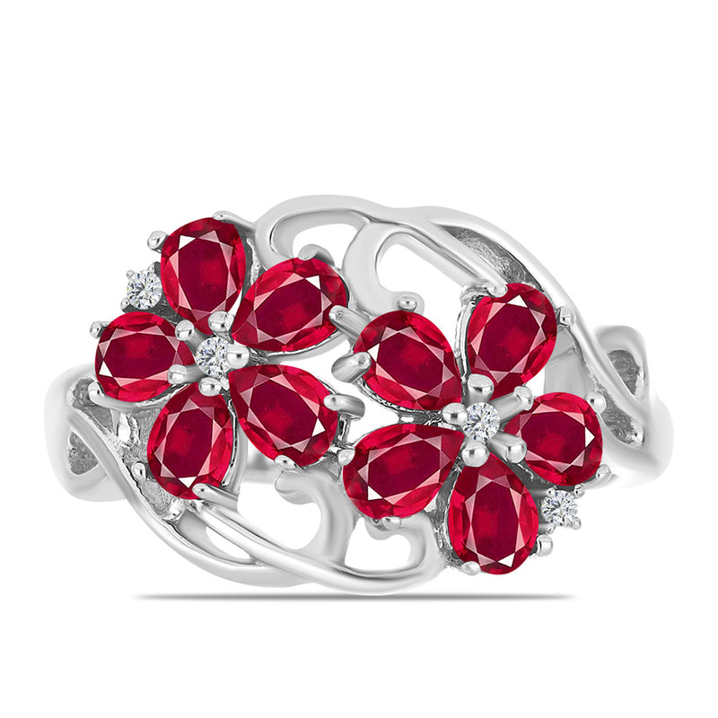 Stříbrný Prsten s Madagaskarským Rubínem a Bílým Topazem