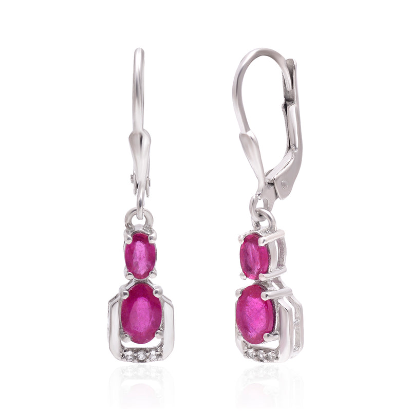 Stříbrné Náušnice s Madagaskarským Rubínem a Bílým Topazem