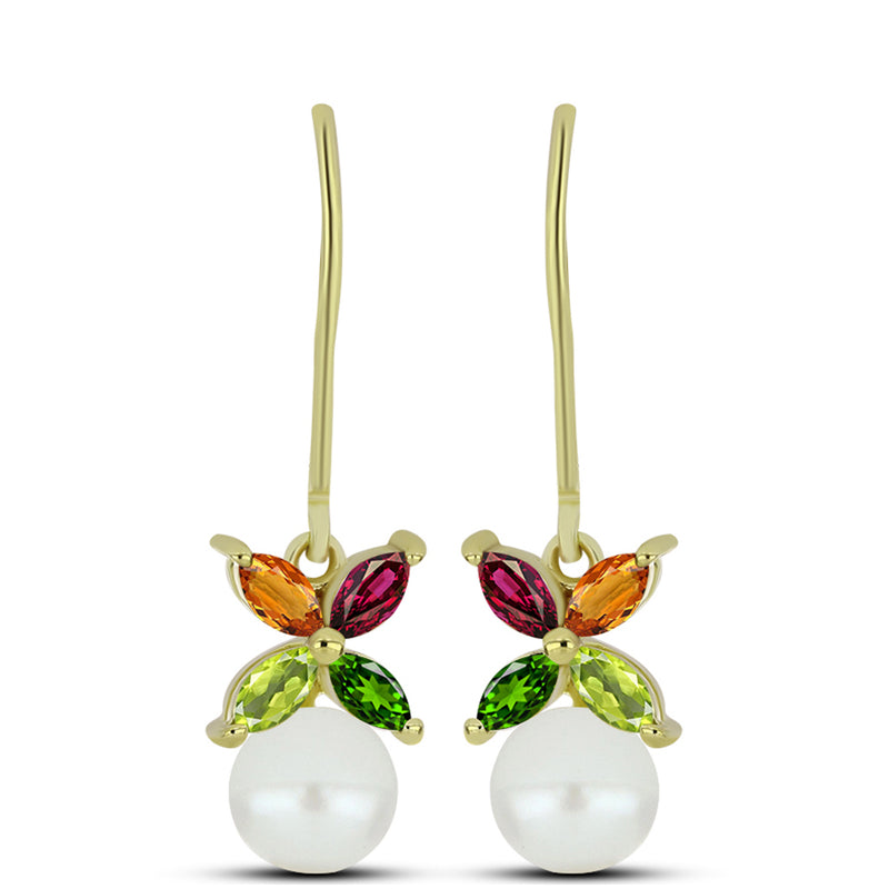 Pozlacené Stříbrné Náušnice s Chakra Turmalínem a Bílou Sladkovodní Perlou
