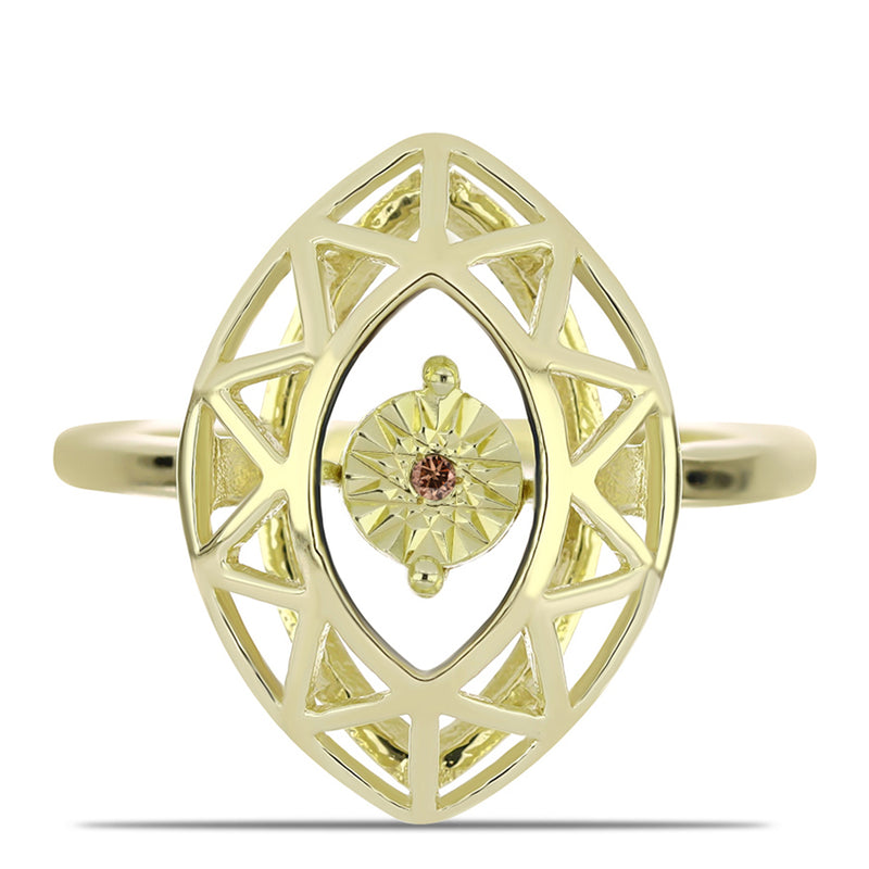 Pozlacený Stříbrný Prsten s Cognac Diamantem