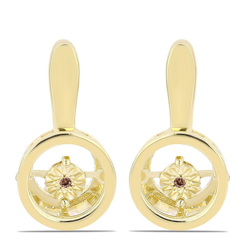 Pozlacené Stříbrné Náušnice s Cognac Diamantem