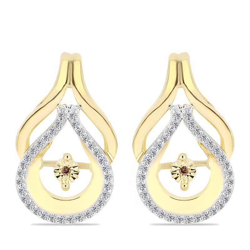Pozlacené Stříbrné Náušnice s Cognac Diamantem a Bílým Topazem