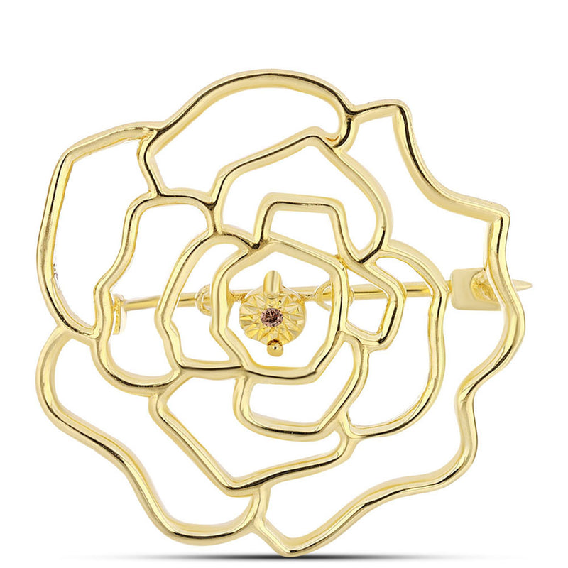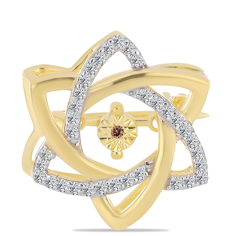 Pozlacený Stříbrný Brož s Cognac Diamantem