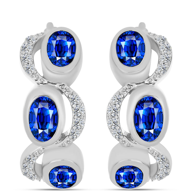 Stříbrné Náušnice s Australským Modrým Safírem a Bílým Topazem
