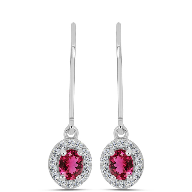 Stříbrné Náušnice s Cruizero Rubelitem a Bílým Topazem